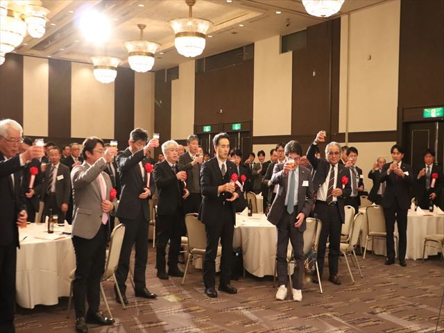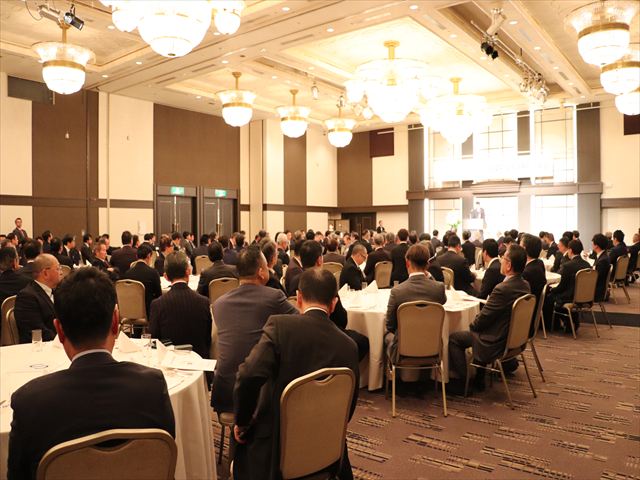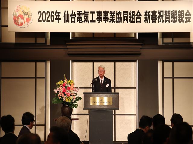 午後4時からは、記念講演が開催され、昨年夏の甲子園にて、東北勢初の優勝を果たされた仙台育英学園高等学校硬式野球部監督須江 航氏を迎えて「伝わる言葉〜失敗から学ぶ〜」と題し、白河の関越えを果たした過程や子どもの考え方の変化などを紹介し、物事がうまくいかないときにこそ、他者の考えや言葉を受け入れる心の大切さを説き、熱く語っていただきました。 午後5時30分から祝賀会が催され前澤理事長の開宴挨拶、東北電力ネットワーク叶蜻苴d力センター所長の蘇武秀行様からご祝辞を頂戴した後、(一財)東北電気保安協会仙台中央事業所所長の石川勝様の乾杯のご発声で祝宴に入りました。中締めは星野中副理事長が行い、今後の組合の更なる飛躍を誓い、盛会裡に終了しました。